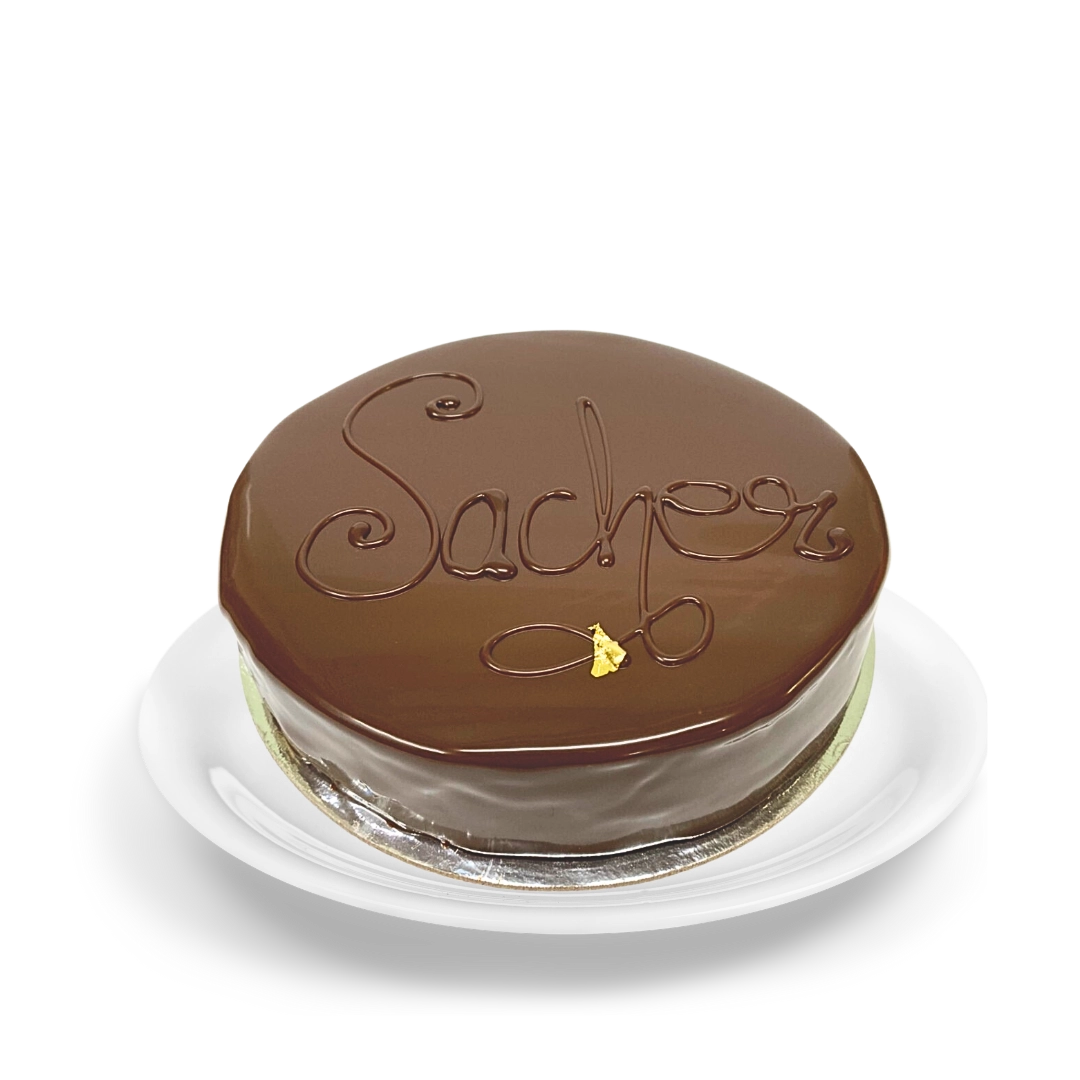 Chocolate sponge with rum syrup. Layers of apricot jam and dark chocolate glaze. Topped with dark chocolate ganache.
